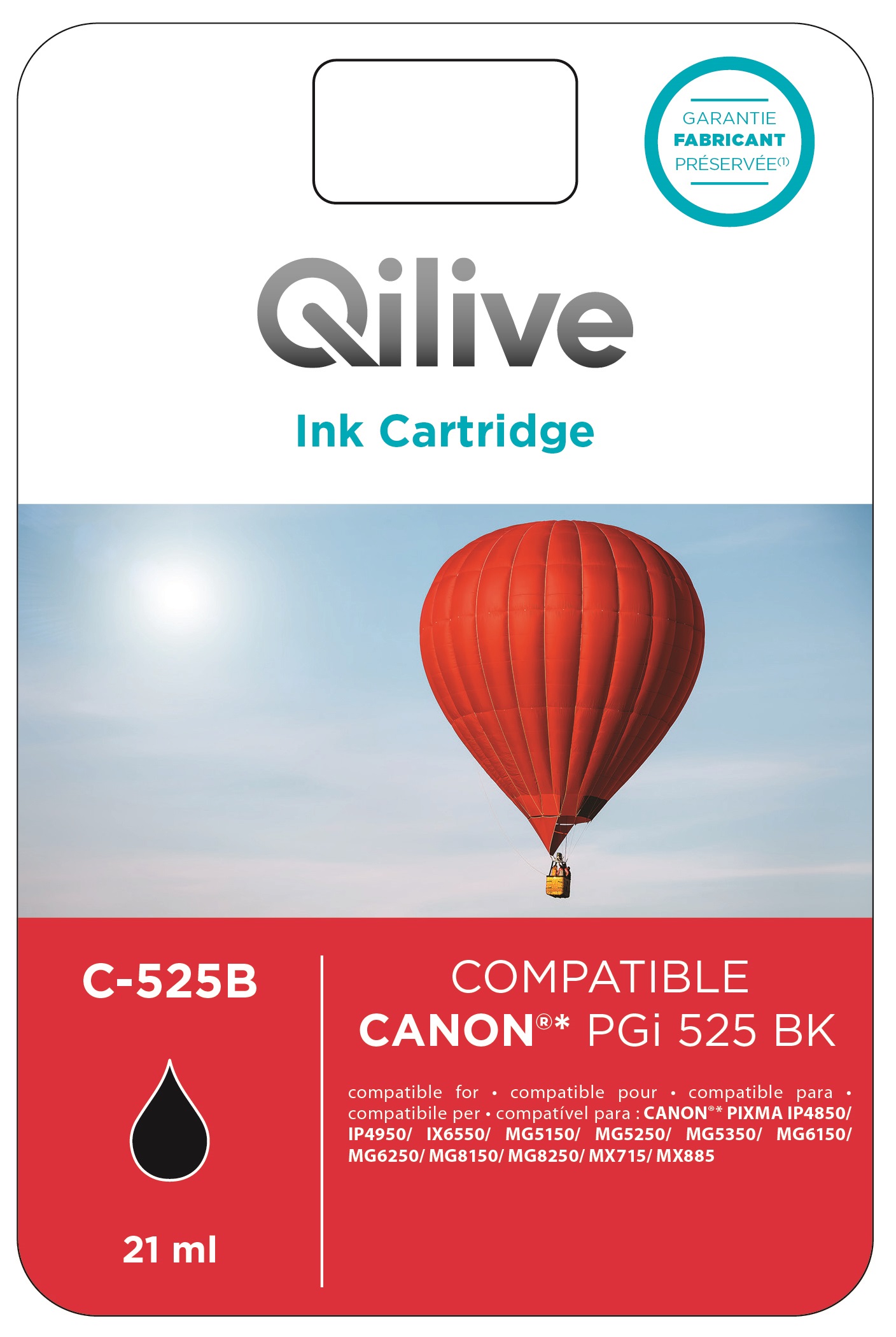 QILIVE Cartouche Noir C-525BCette cartouche est compatible avec l'imprimante Canon PGi 525 BK - NOIRE.Qilive est née pour permettre aux clients Auchan d'accéder à la meilleure technologie, au meilleur prix. Qilive, c'est un développement permanent des fonctionnalités et des innovations technologique