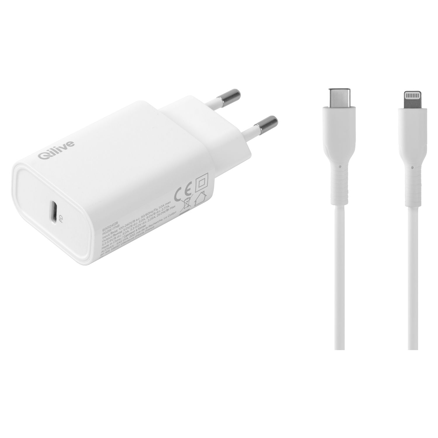 Chargeur et câble USB C / Lightning - Blanc
