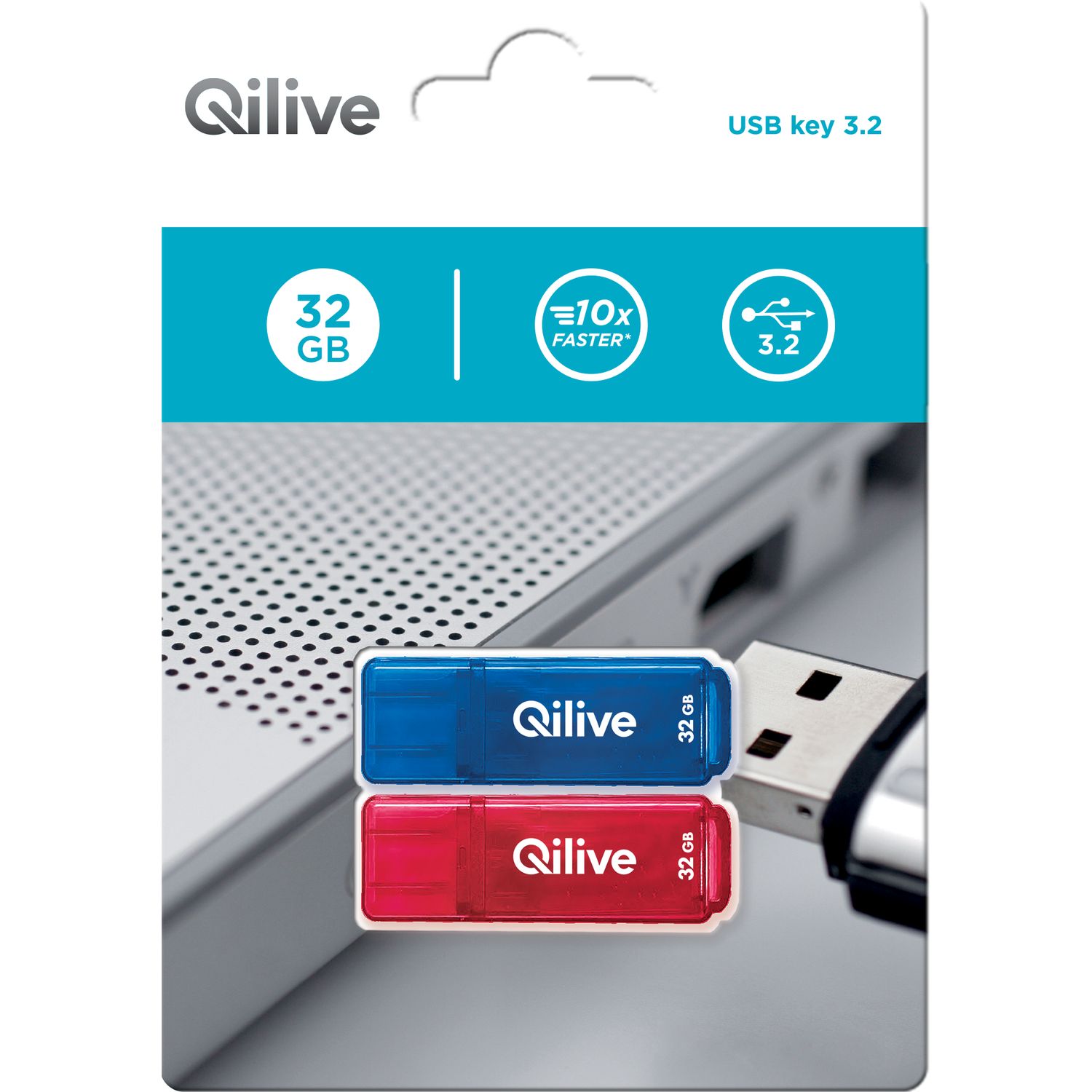 Découvrez le Lot de 2 Clés USB QILIVE 3.2 32 Go K103, la solution de stockage idéale qui double votre capacité et votre polyvalence ! Ce pack astucieux combine la rapidité de l'USB 3.2, une capacité généreuse pour chaque clé, et un design distinctif rouge et bleu pour que vous puissiez organiser et transporter vos données avec style et efficacité.