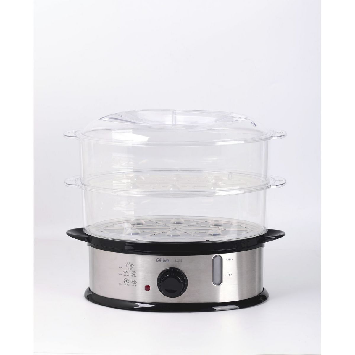 Découvrez le cuiseur vapeur 152874 de chez Qilive, qui vous permettra de profiter de délicieux plats cuits à la vapeur ! Grâce à sa puissance de 800 W et jusqu'à 60 min de marche avec un arrêt automatique, cuisiner sainement deviendra un jeu d'enfants !Ses plusieurs niveaux vous permettront de cuisiner différents produits en même temps.