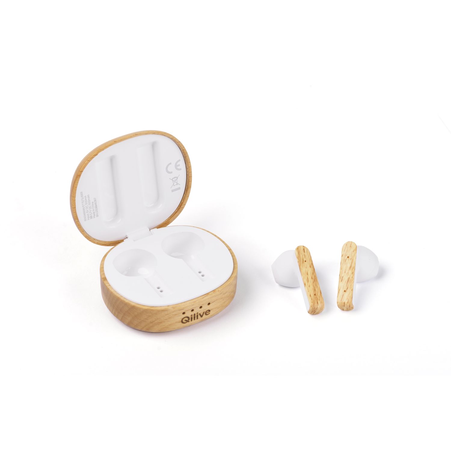 Ecouteur sans fils Bluetooth avec étui de recharge Q1669 en Bois FSC et plastique recyclé