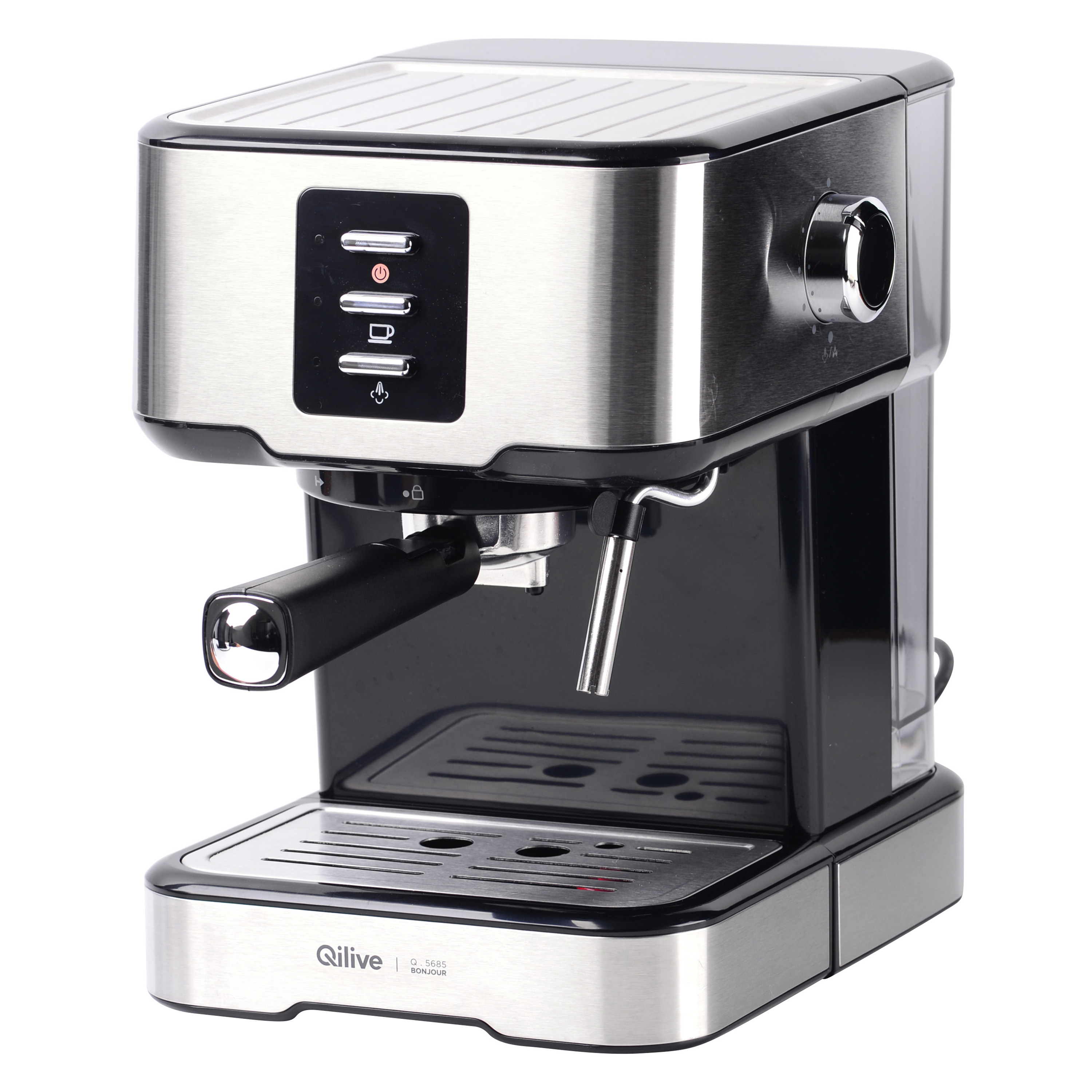 À l’aide de sa buse vapeur réglable vous serez capable de réaliser une mousse de lait onctueuse indispensable à la réalisation d’un bon cappuccino. L’expresso Qilive dispose d’un panneau de commandes intuitif : choisissez la fonction désirée en appuyant sur le bouton et laissez faire la machine pour réaliser un à deux cafés simultanément. Avec son grand réservoir de 1.5L et son indicateur de niveau d'eau, vous ne serez jamais pris de court.