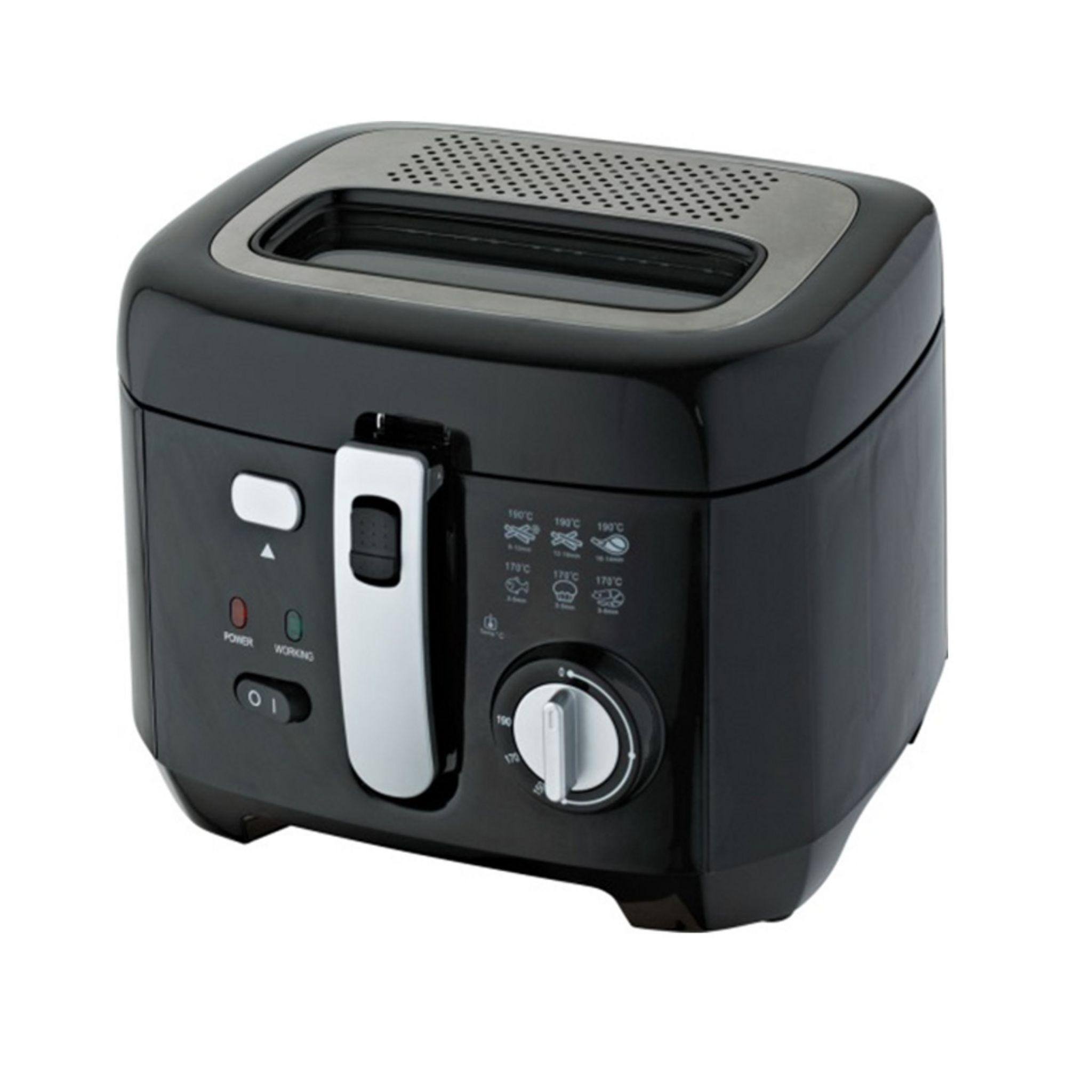 Capacité huile 2.5L, Capacité frites 1.2Kg, Filtre et cuve amovibles, Voyants lumineux, Interrupteur marche/arrêt, Pieds anti-dérapants, Large fenêtre, Thermostat ajustable jusque 190°C, Cuve anti-adhésive, Noir et inox