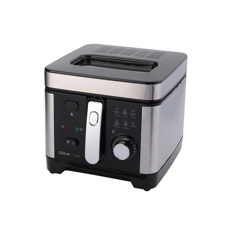 Préparez de délicieuses frites avec la friteuse Qilive. Profitez d’une friteuse au format compact avec une capacité suffisante pour toute la famille ! Parfaite pour une famille de quatre personnes grâce à sa généreuse capacité de 1 kg. La friteuse est dotée de plusieurs fonctionnalités pratiques notamment d’un grand hublot de contrôle et d'un thermostat réglable (de 150 à 190 °C) pour une grande polyvalence de cuisson.Surveillez facilement votre cuisson grâce au grand hublot. La position d’égouttage dédiée promet moins d’huile avant de servir. Vous pouvez également préparer des tapas et toutes sortes d’aliments frits : samoussas, croquettes, falafels, poisson, churros ou beignets. Le tout avec une puissance de seulement 1800 W. Sa taille compacte et sa poignée rabattable permettent de ranger facilement la friteuse dans toutes les cuisines.
