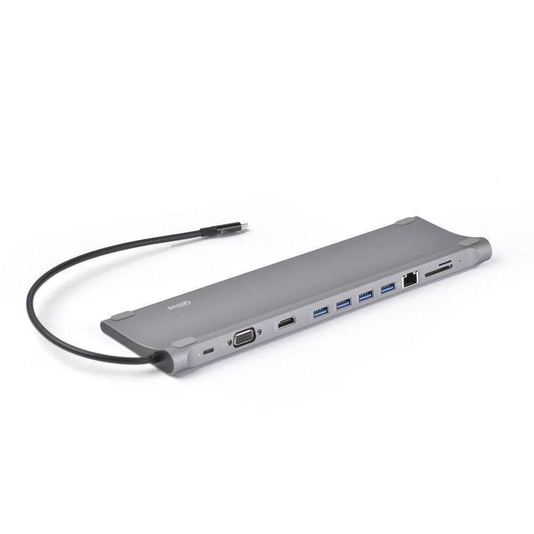 1 x USB-C - 1 x VGA Femelle - 1x HDMI 4K - 4 x USB 3.0 - 1 x RJ45 - 1x SD card/Micro SD - 1 x Jack 3.5mm