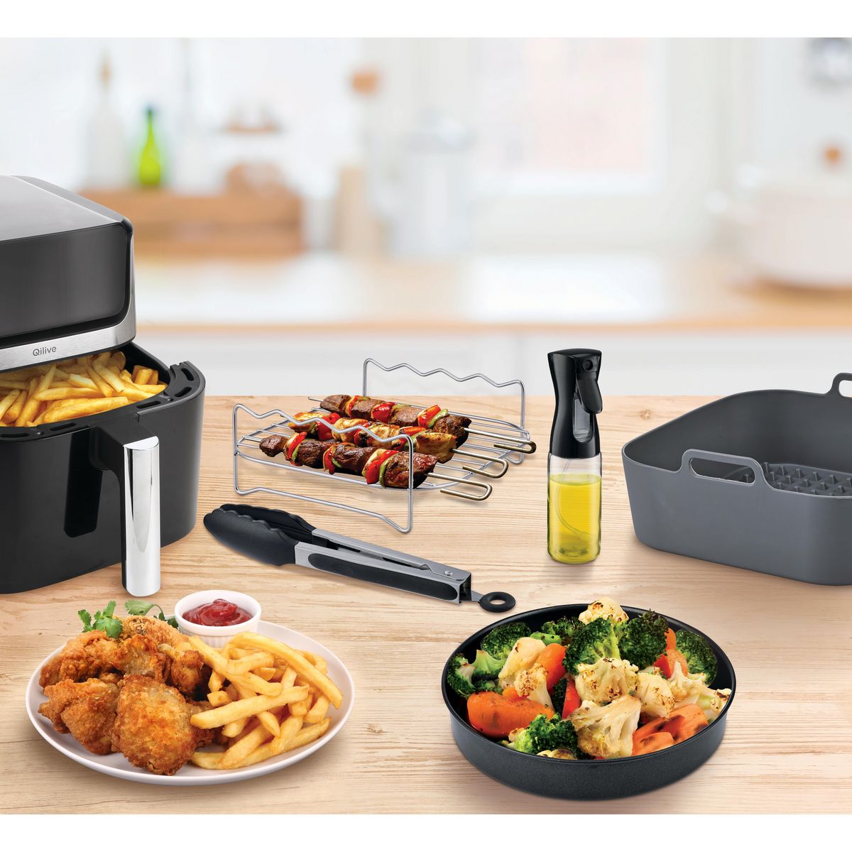 Contient 5 accessoires : Un moule 20.8 cm, Une grille 19 x 19 cm, Une pince, Une bouteille de pulvérisation et un moule silicone 17.5 x 17.5 cm