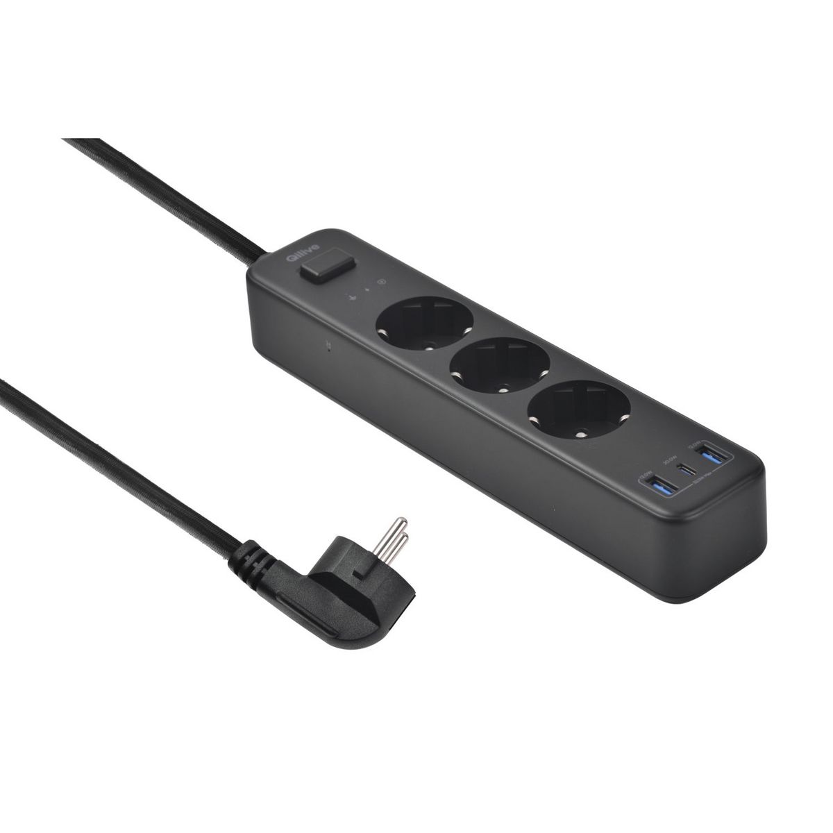 QILIVE Multiprise 3 Fiches et 3 Prises USB - Noir