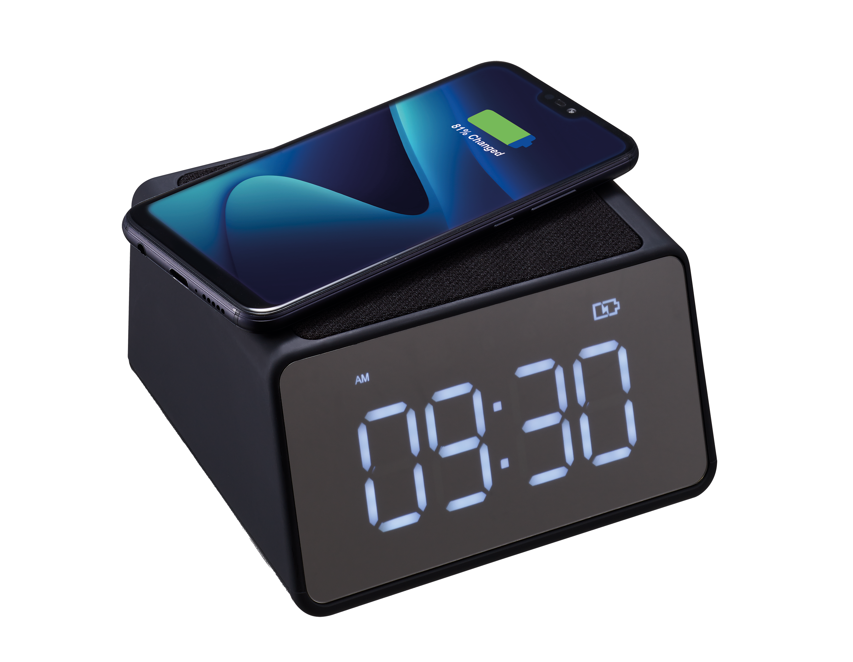 Radio réveil sans fils double alarme avec chargeur induction - Noir