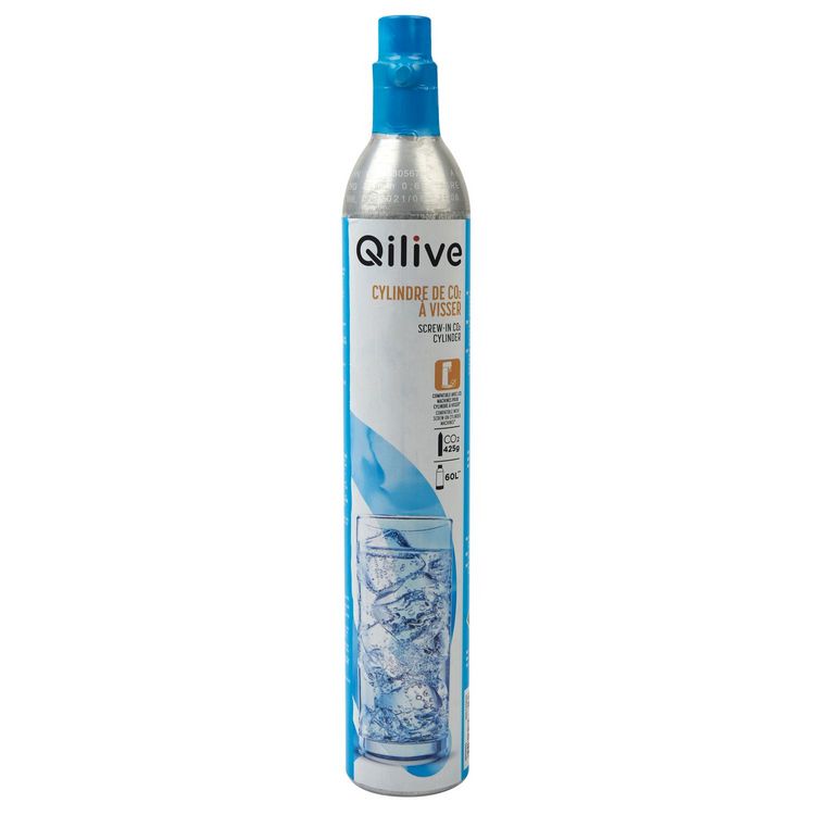 Le cylindre d'échange CO² de Qilive est un accessoire pour les machines à eau pétillante. Il permet de transformer jusqu'à 60 litres d'eau plate en eau pétillante. Ce cylindre d'échange est une solution pratique et écologique pour ceux qui aiment leur eau pétillante à la maison sans avoir besoin d'acheter des bouteilles en plastique.