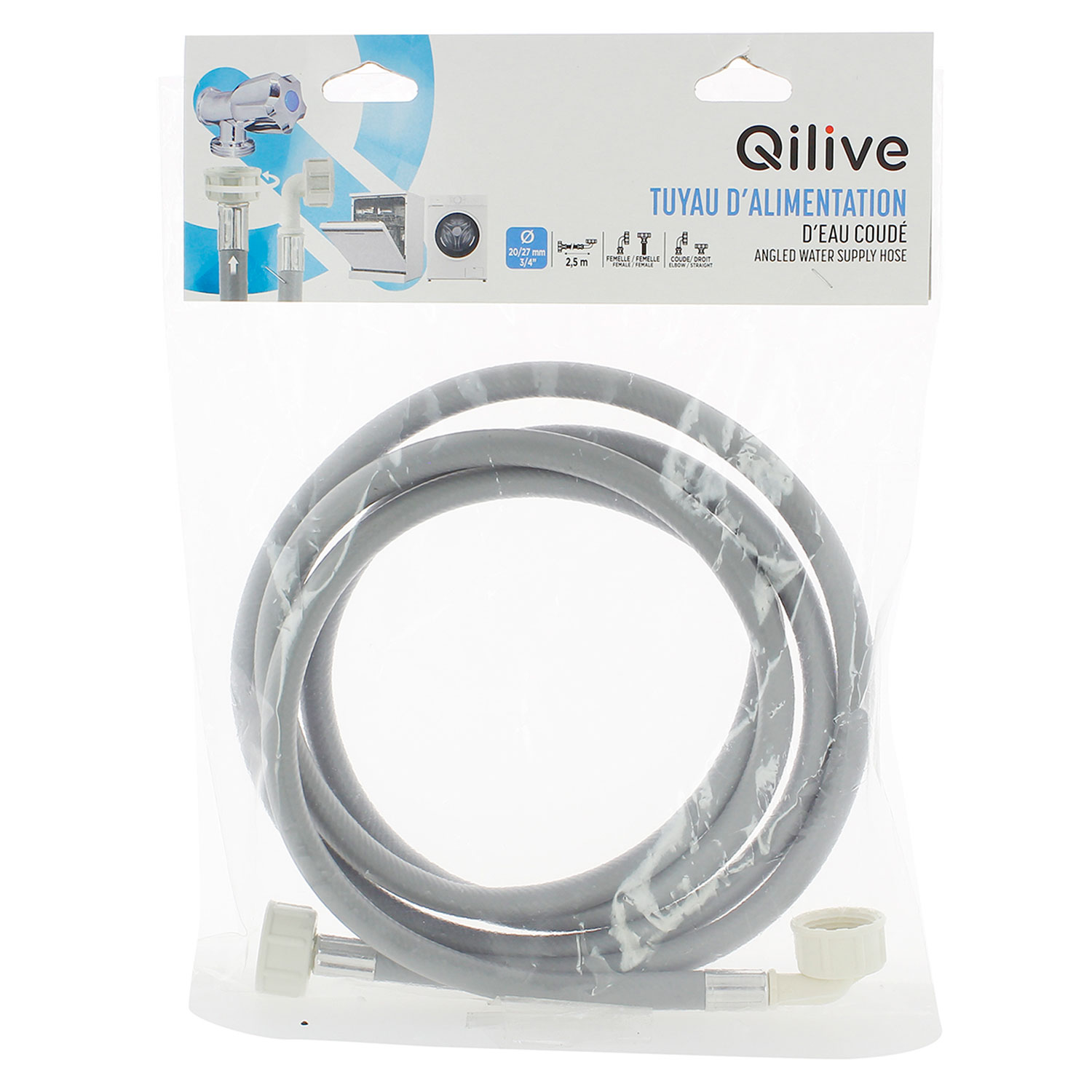 QILIVE Tuyau d'Alimentation d'Eau Coudé 600123045 - 2.5m : La Solution Idéale pour un Raccordement Facile et Optimisé !