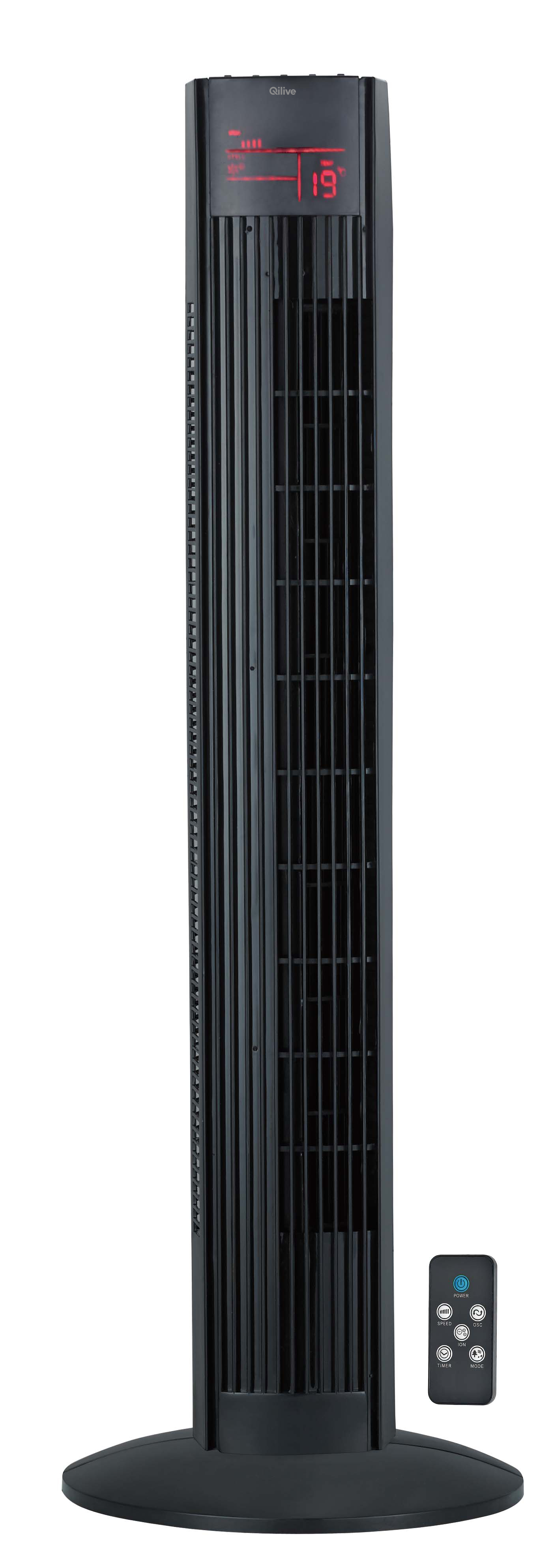 Qilive vous propose ce ventilateur colonne d'une puissance de 45W. 3 vitesses sont réglables via une télécommande, de plus une fonction oscillation permet à ce ventilateur de rafraîchir toute une pièce sans problème. Ce ventilateur est équipé d'une minuterie pour vous organiser au mieux sans trop consommer.