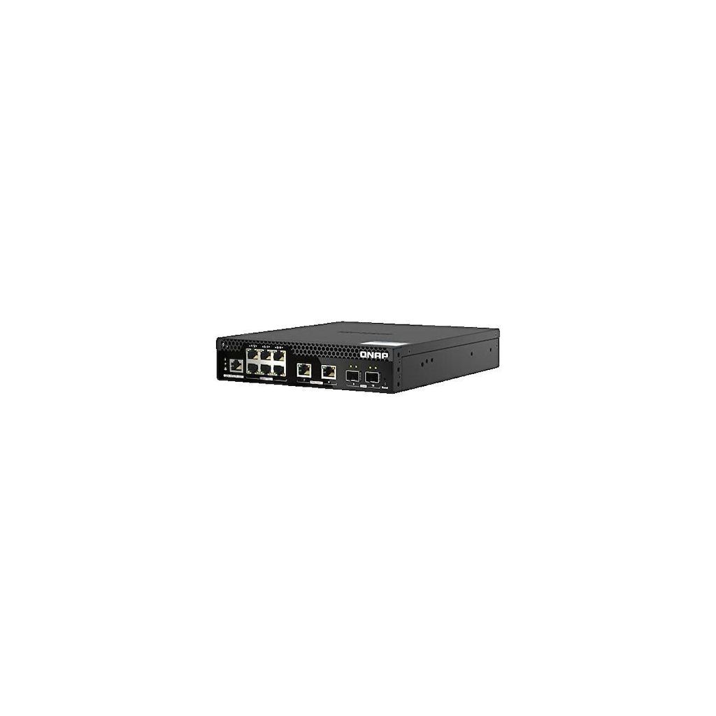 Le commutateur réseau QNAP QSW-M2106PR-2S2T est un commutateur géré de couche 2 offrant une gestion réseau efficace. Il supporte PoE avec une capacité de puissance de 310 watts, dispose de 6 ports 2,5 GbE PoE++ et 2 ports 10 GbE PoE++, ainsi que 2 ports en fibre SFP+. Sa conception compacte et éléga