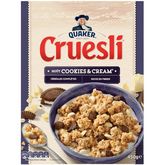 Naturellement gourmand Chaque matin, réveillez vos papilles avec Quaker Cruesli®: des pépites croquantes de flocons d'avoine et blé complets délicatement dorées au four, de généreux morceaux de cookies et d'éclats de chocolat blanc, pour un petit-déjeuner savoureux pour toute la famille. Quaker Cruesli® est naturellement source de fibres, vitamine B1 et phosphore pour bien démarrer la journée. ✓ Sans huile de palme⁺ ✓ Sans conservateur ⁺ Plus d'informations sur www.quaker.fr Découvrez également Quaker Cruesli Chocolat noir 450 g Quaker Cruesli Chocolat au lait 450 g Quaker Cruesli Mélange de noix 450 g Quaker, expert de l'avoine depuis plus de 140 ans C'est en 1877 que deux fermiers s'associent pour produire de l'avoine complète de haute qualité, depuis un petit moulin situé dans l'Ohio. Quaker devient alors la première marque de céréales au monde. Depuis, nous veillons toujours avec la même attention à la sélection de nos céréales complètes et à leur faible transformation, pour en préserver leurs qualités nutritionnelles et leur goût authentique. Pépites de céréales croustillantes avec cookies et chocolat blanc