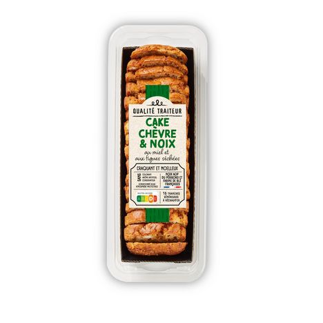 CAKE AU FROMAGE DE CHEVRE, A L'EMMENTAL, AUX NOIX AOP, ET AUX FIGUES SECHEES