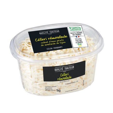 Ingrédients : Ingrédient(s): CELERI rave râpé 71%, huile de colza, eau, MOUTARDE de Dijon 2% (eau, graines de MOUTARDE, vinaigre d'alcool, sel), vinaigre d'alcool, sucre, sel, jaune d'OEUF, jus de citron à base de concentré, épaississants : E412, E415, amidon modifié de pomme de terre, poivre.