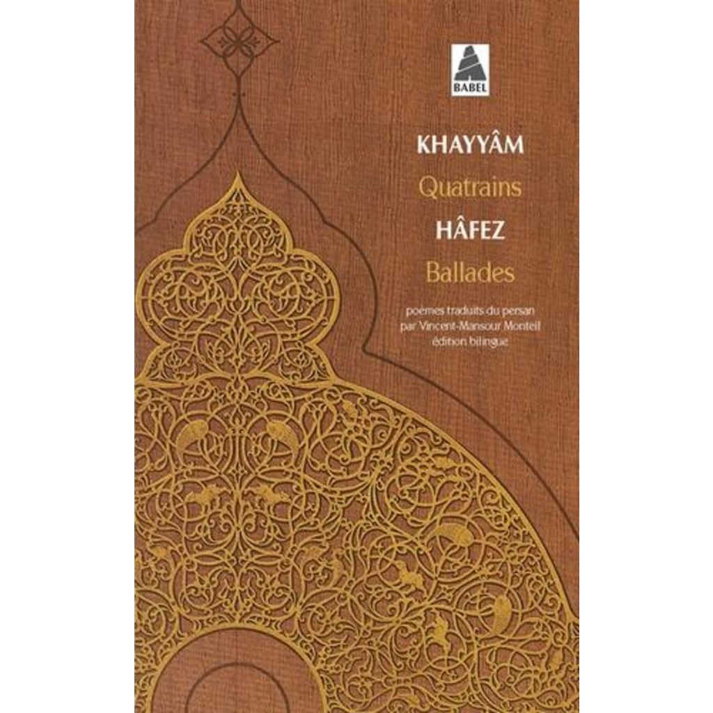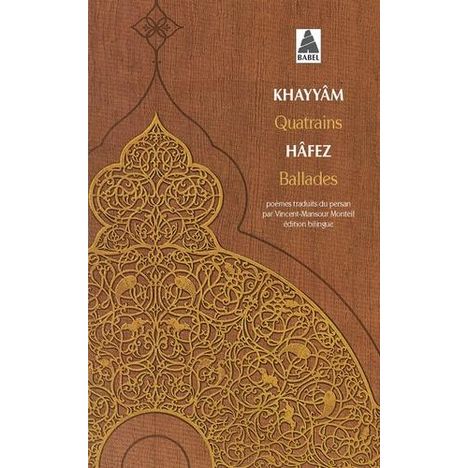 Omar Khayyâm, mathématicien et poète persan mort en 1132, a laissé un grand nombre de robâ'iyât (quatrains), dont on a toujours admiré en Orient la construction rigoureuse et le ton sceptique. Les deux paraphrases anglaises de Fitzgerald (1859 et 1868) les ont fait connaître en Europe, mais il restait à leur rendre justice par une version française rimée et rythmée. C'est le pari que réussit ici Vincent-Mansour Monteil, qui en a choisi cent soixante-douze. Les Quatrains sont suivis de neuf ghazal (ballades) de Hâfez de Shirâz, mort en 1389, dont Goethe, dès 1819, dans son Divan d'Occident et d'Orient, a célébré l'immense génie poétique.