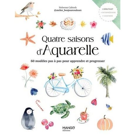 De par ses effets incroyables et sa pratique relaxante, l'aquarelle séduit débutants comme confirmés. Avec ce livre lancez-vous à votre tour et plongez dans l'univers frais et délicat de Nolwenn, alias @atelier_bonjourcouleurs. Artiste autodidacte, elle partage ici son expérience et son univers créatif. Matériel, techniques de base et rudiments de la couleur, découvrez l'essentiel de ce médium expliqué simplement et avec de nombreuses illustrations. Quel que soit votre niveau en aquarelle une pratique régulière est la clé. Grâce aux 60 modèles imaginés pour ce livre et répartis saison par saison, vous pourrez pratiquer sans attendre et progresser toute l'année. Laissez-vous gagner par la magie de l'aquarelle, trouvez l'inspiration au fil des saisons et enrichissez votre palette à mesure que votre technique s'affine.