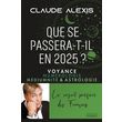 Que va-t-il se passer en 2025, en France et à l'étranger, dans les sphères de l'économie, de la politique, de l'environnement et du showbiz ? Que va-t-il se passer en 2025 pour chacun d'entre vous, dans les domaines sentimental, professionnel, de la santé ou encore financier ? Voyant de naissance renommé pour la justesse de ses prédictions, Claude Alexis relève une fois encore le défi de prédire votre avenir et celui du monde. Ses prédictions seront une aide précieuse pour anticiper les hauts et les bas, conseiller vos proches et les accompagner dans certains domaines de leur vie. Et, pour aller plus loin, des experts en numérologie, en astrologie et en divination viendront apporter leur éclairage inspirant sur l'année à venir. De même, des thématiques liées au ressenti du médium, à son intuition, à la protection et à la chance complètent cet ouvrage.