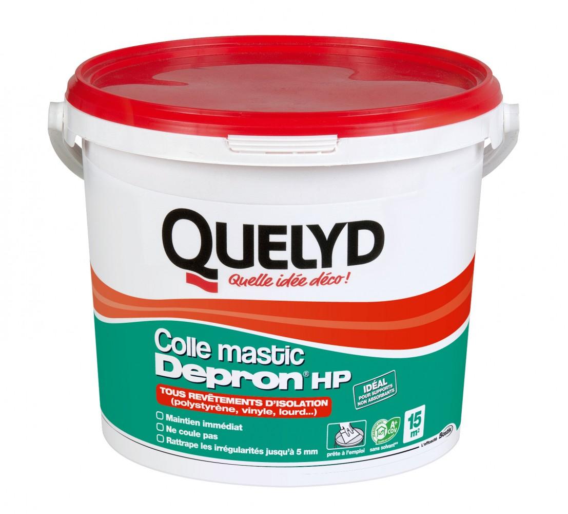 Colle haute performance, prête à l'emploiNom du produit: Colle mastic pour matériaux isolantsType de produit: Universelle (tous supports)Temps de prise (en min): 0Contenance (en kg ou l): 6 kgTemps de séchage définitif: 48Marque du produit: QUELYDProduit emballé : poids (en kg): 6.496Produit emballé