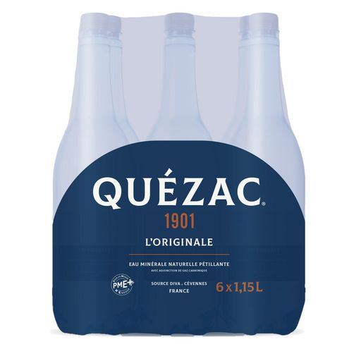 L’eau minérale naturelle légendaire Quézac, avec des bulles agréables et rafraichissantes, pour une consommation à tous moments de la journée.