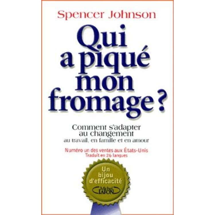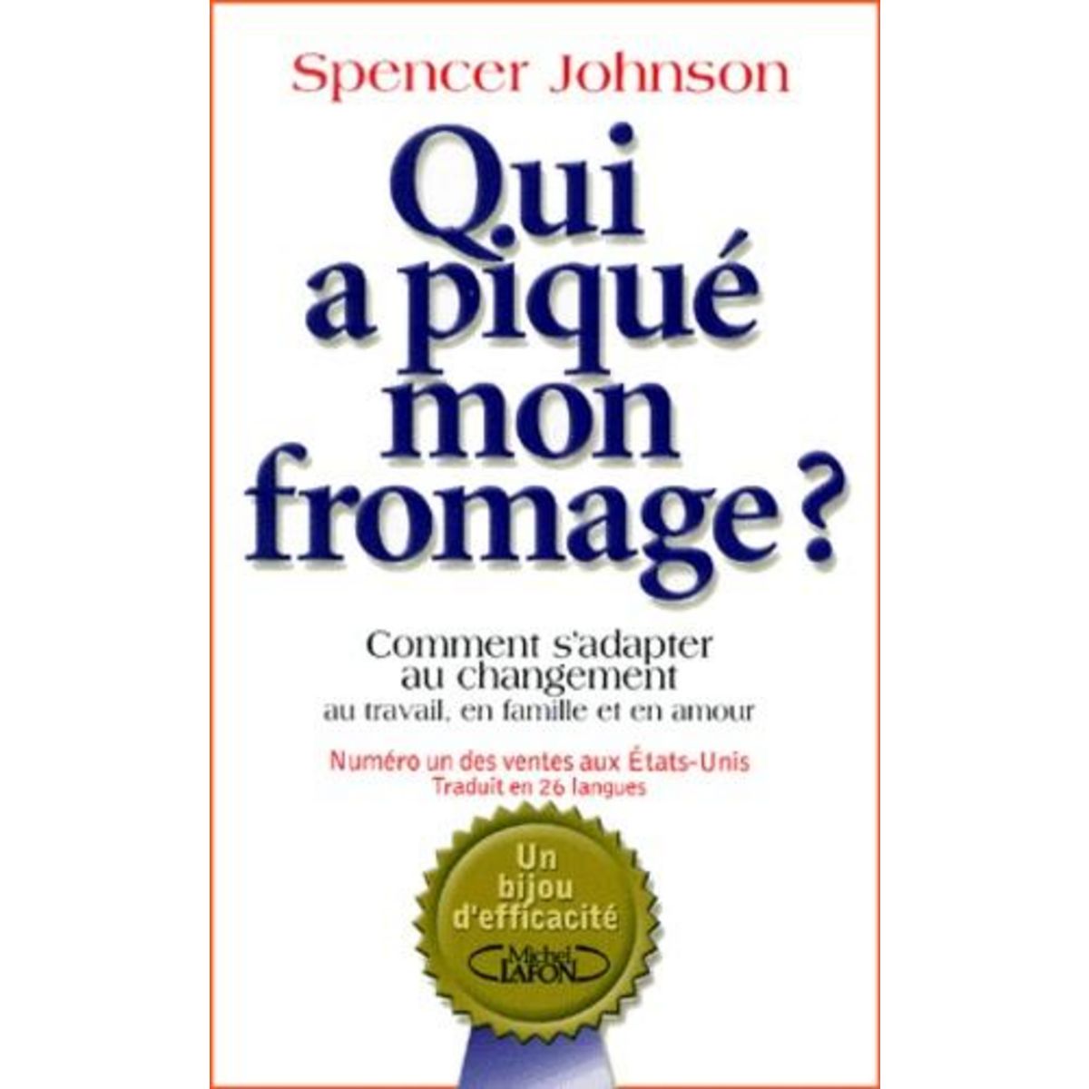 Qui a piqué mon fromage ? n'est pas du tout une histoire pour les enfants. Cet ouvrage, numéro un des ventes aux Etats-Unis pendant des mois et traduit en dix-huit langues, est bien un ouvrage de management : les PME comme les multinationales en ont fait leur vade-mecum pour salariés stressés, et les médecins le recommandent à leurs patients. Sous ce titre humoristique se cache une fable sur le monde contemporain, un monde en changement perpétuel. Comprendre que le changement est inévitable, et s'adapter à ce changement, telle est, selon Spencer Johnson, la clé du bonheur. La parabole est simple : deux souris et deux hommes sont dans un labyrinthe, et leur fromage a disparu. Comment vont-ils réagir pour retrouver ce fromage symbolique : place dans l'entreprise, dans la famille, dans la société... La morale de cette histoire est illustrée par une postface décrivant la réaction d'un groupe à l'écoute de ce conte.