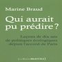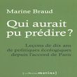 Le 31 décembre 2022, Emmanuel Macron surprend la France en déclarant : Qui aurait pu prédire la crise climatique ? Une phrase qui fait bondir les experts : tous alertent depuis un demi-siècle. Cette question - Qui aurait pu prédire ? - traverse pourtant les dix années écoulées depuis l'accord de Paris : comment expliquer que nous ayons si mal anticipé les résistances sociales et politiques à la transition ? Marine Braud a vécu ces dilemmes au plus près du pouvoir. Des négociations de la COP 21 aux cabinets ministériels, du WWF à l'Elysée, elle a accompagné les décisions écologiques les plus structurantes de la décennie. Son récit éclaire les coulisses d'une écologie politique fragile, instable, souvent freinée par les peurs et les calculs de court terme. En tirant les leçons des succès comme des échecs, elle propose des pistes pour inventer un véritable contrat social de la transition, et bâtir une société sobre, juste et protectrice du vivant. Un témoignage rare et lucide qui rappelle que l'histoire de la transition écologique n'est pas écrite d'avance : elle dépend de nos choix, et surtout de notre capacité à ne plus fermer les yeux.