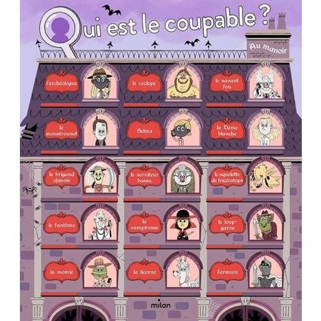 Voici un nouvel épisode de Qui est le coupable ? , le livre qui multiplie le plaisir de lire en l'associant à celui de l'enquête et du jeu ! Après le château Mordoré et le galion de Barbe-Noire, rendez-vous au manoir hanté ! Chacun des 15 personnages est tour à tour victime d'un affreux forfait : qui a découpé le cyclope en rondelles ? Qui a volé le dentier de Fédora la vampiresse ? Qui a fait tomber la falaise sur la dame blanche ? Qui a enfermé le fantôme ? ... A l'enfant de chercher le coupable selon les indices physiques rapportés par les témoins et distillés dans l'histoire : le coupable avait un voile blanc, a des dents cariés... A chaque indice, le lecteur élimine les personnages qui ne correspondent pas. La progression de l'enquête se fait très concrètement grâce à un astucieux système de fenêtres à fermer sur la couverture qui reprend le principe du célèbre jeu Qui est-ce ? Pascal Prévot a réussi à combiner un principe interactif et ludique avec des histoires drôles et toniques qui se lisent indépendamment, tout en étant liées par un fil rouge habilement déroulé au fil des pages.