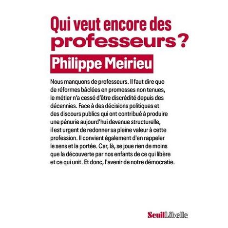 QUI VEUT ENCORE DES PROFESSEURS ?, Meirieu Philippe