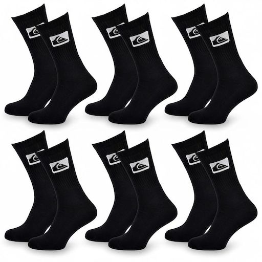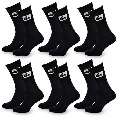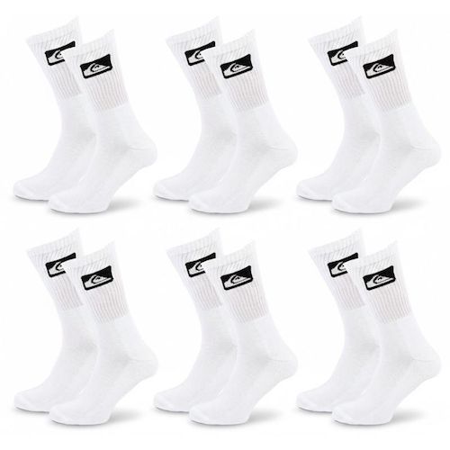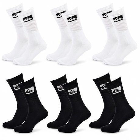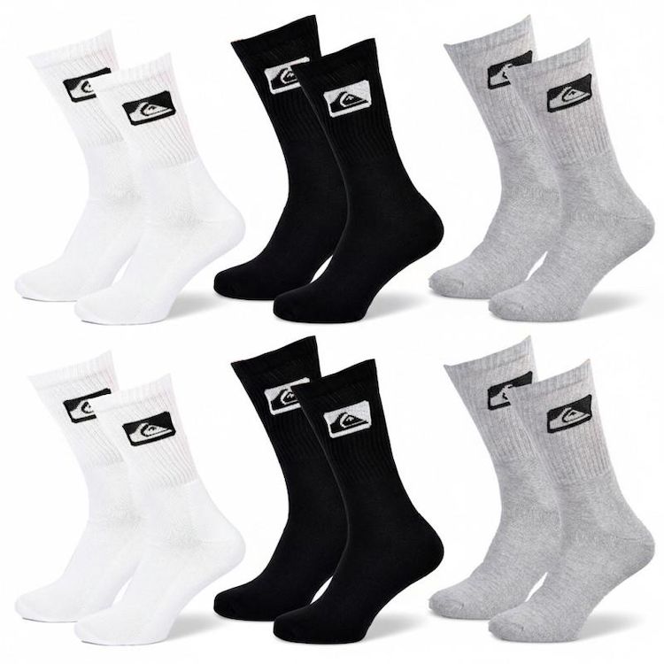 Affirmez votre style sportif avec Quiksilver pack de 6 paires de chaussettes homme hauteur tennis crew mi mollet concues pour allier performance confort et style surfwear urbain modele cushioned sole avec semelle integralement rembourree en bouclettes pour un amorti renforce et une sensation de douceur agreable sous le pied maille respirante favorisant le maintien au sec meme lors dune activite prolongee tige elastique avec compression cheville resserrage au niveau du pied talon forme pour une stabilite optimale coutures plates aux orteils pour limiter les frottements coton majoritaire associe au polyester et a lelasthanne pour garantir douceur resistance et elasticite un essentiel du vestiaire masculin signe Quiksilver