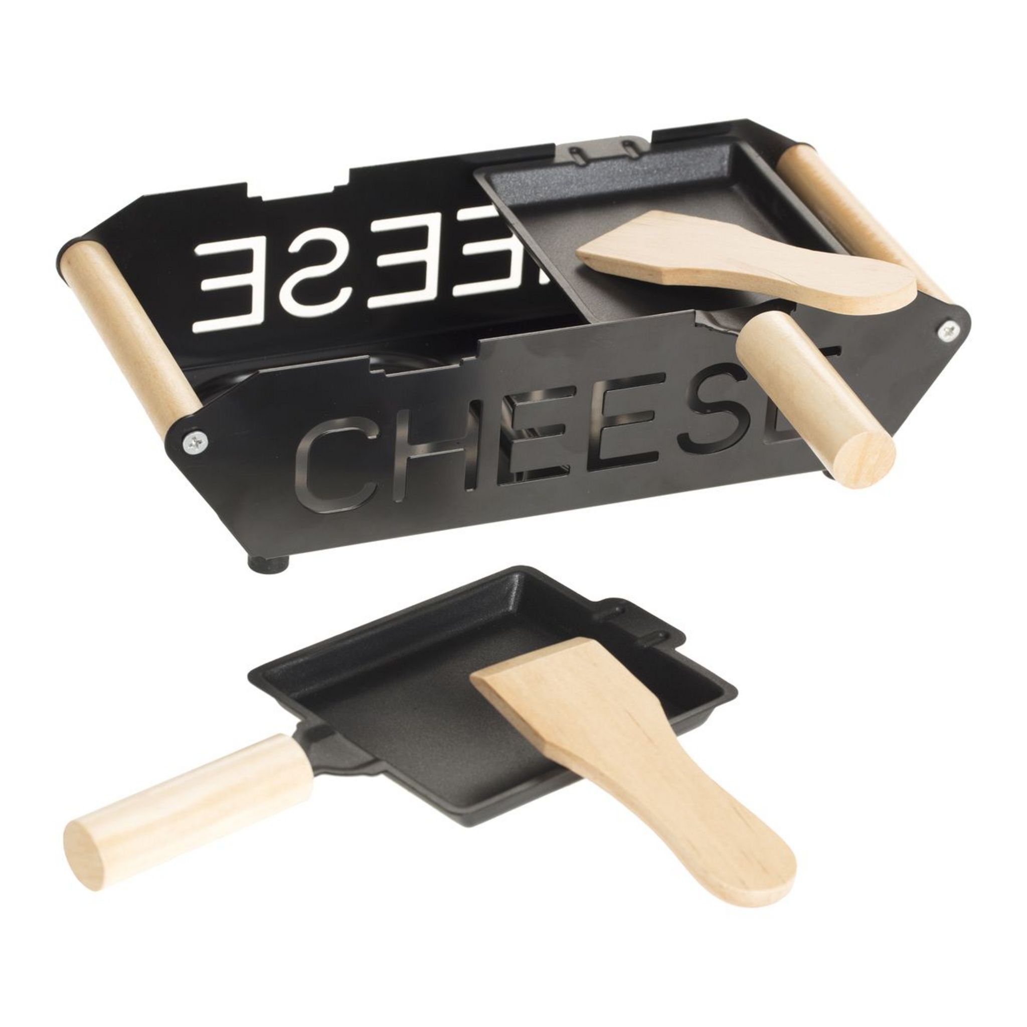 Découvrez la raclette bougie 2 personnes ! Grâce à cette raclette bougie facilement transportable vous pourrez déguster une raclette n'importe où ! 2 spatules en bois incluses et 2 poelons inclus. Non compatible au lave-vaisselle.