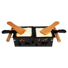 Raclette bougie 2 personnes, méthode pratique et écologique pour faire fondre son fromage. Plus besoin d'appareil qui chauffe excessivement et qui encombre la table. Parfait pour des soirées en amoureux.