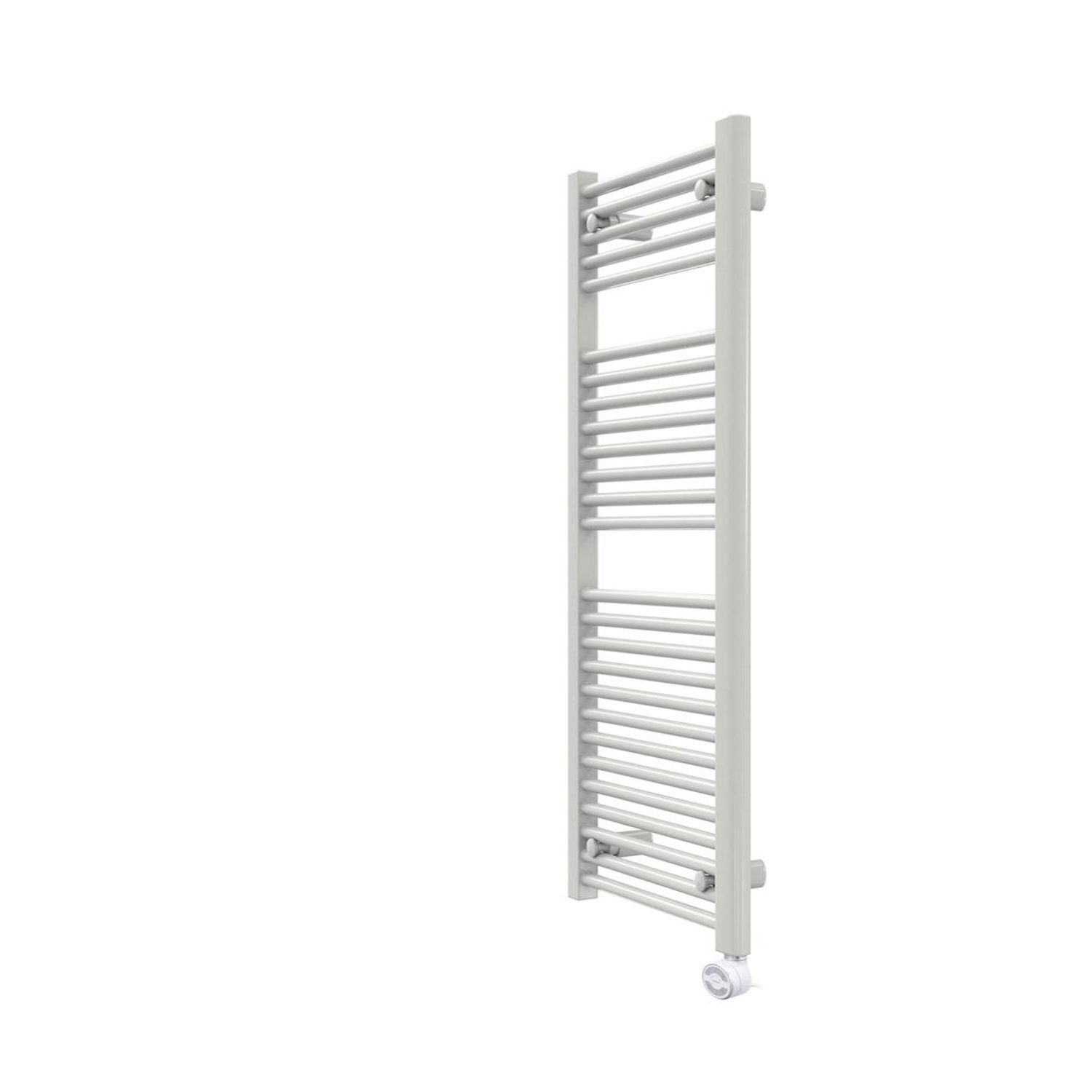 Radiateur électrique mural SCALA N en finition blanche, alliant design fonctionnel et performance thermique. Ce modèle de 1200 x 400 mm est équipé de 26 tubes horizontaux offrant une excellente diffusion de la chaleur. Compact et élégant, il s'adapte parfaitement aux salles de bains et pièces de v