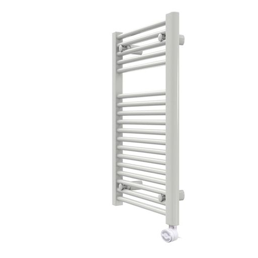 Radiateur électrique mural SCALA N en finition blanche, au design fonctionnel et moderne. Ce modèle de 800 x 450 mm, doté de 18 tubes horizontaux, garantit une diffusion uniforme de la chaleur tout en conservant des dimensions compactes, parfaites pour les petites salles de bains ou espaces restrein