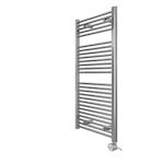 Radiateur électrique mural SCALA N en finition chrome brillante, au design élégant et fonctionnel. Ce modèle de 1200 x 500 mm, équipé de 26 tubes horizontaux, offre une diffusion de chaleur homogène et rapide, idéale pour les salles de bains ou espaces modernes. Sa finition chromée hautement résis