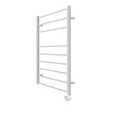 Sèche-serviettes électrique mural SUNIT en finition blanche RAL 9010, au design sobre et fonctionnel. Compact et performant, ce modèle de 943 x 500 mm, composé de 9 tubes horizontaux, assure un séchage rapide des serviettes et une diffusion homogène de la chaleur dans la salle de bains. Sa finitio