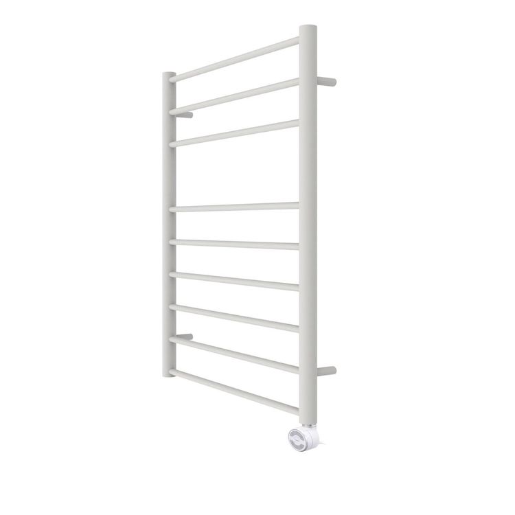 Sèche-serviettes électrique mural SUNIT en finition blanche RAL 9010, au design moderne et épuré. Ce modèle de 943 x 600 mm, composé de 9 tubes horizontaux, est idéal pour chauffer et sécher efficacement vos serviettes tout en diffusant une chaleur douce et homogène dans la salle de bains. Compact