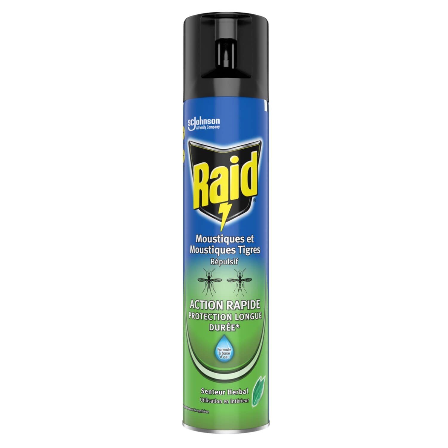 L'aérosol Répulsif Moustiques Raid® Senteur Herbal protège votre intérieur des moustiques et moustiques tigres en continu jusqu'à 4 heures*. Il vous protège des moustiques qui pourraient se poser sur votre peau et vous piquer. Sa formule est à base d'eau et diffuse un agréable parfum senteur herbal.