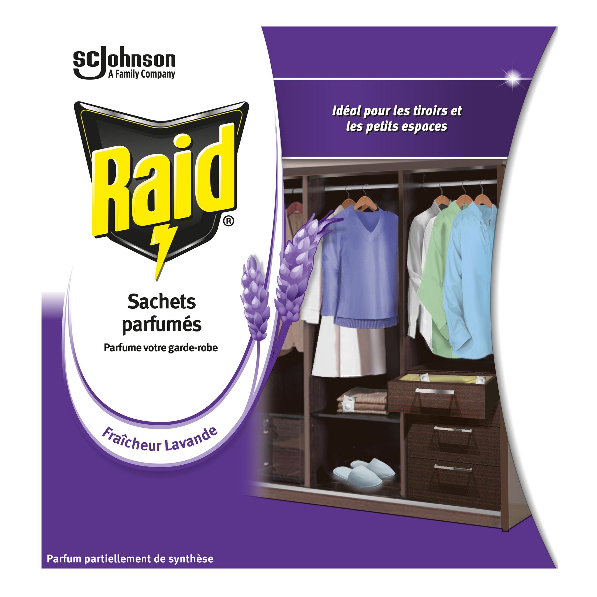 Raid Sachets Parfumés Fraîcheur Lavande, 18 unités Parfume votre garde-robe (18 sachets)