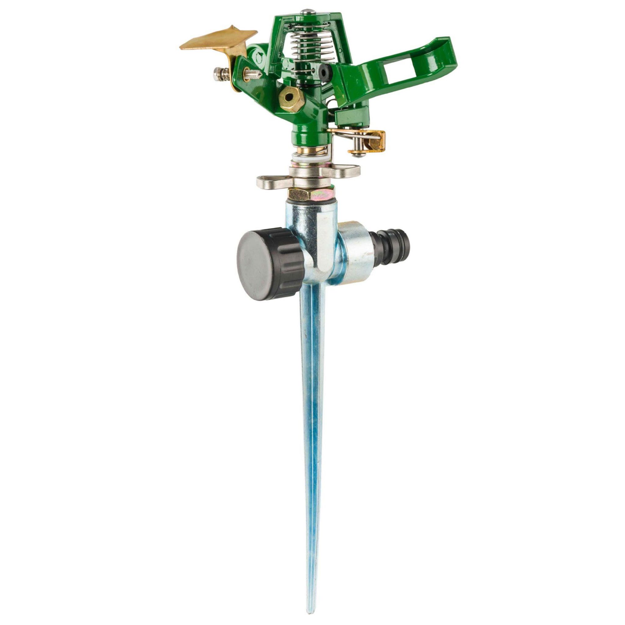 Description détaillée du produit Produit: Arroseur circulaire tête métal sur pic Marque: RAIN Secteur d'arrosage réglable de 0° à 360° Dispose de 2 filetages de 20 x 27 mm Montage: sur un pic