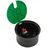 Corps en polypropylène noir avec couvercle en même matériau vert.