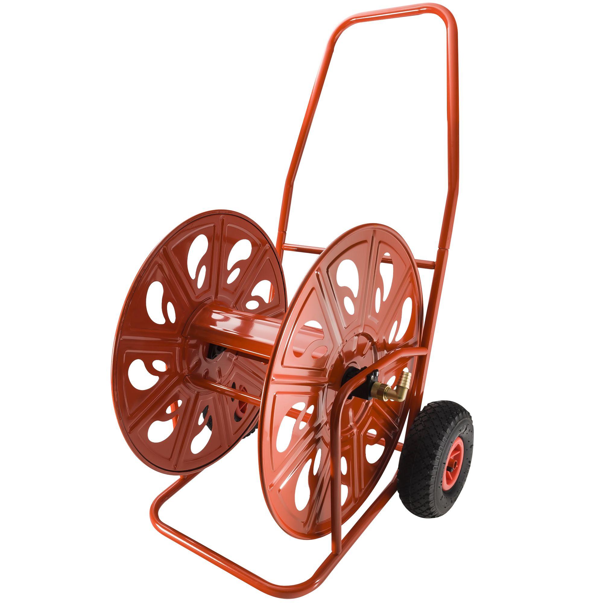 Ce dévidoir tuyau vide en métal au design particulièrement soigné assure une haute stabilité ainsi qu'une maniabilité incomparables. Cet enrouleur accepte une capacité de: 250 m de tuyau D.15 / 175 m de tuyau D.19 / 120 m de tuyau D.25. Ils possèdent des roues gonflables.