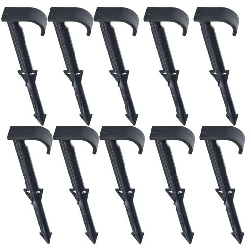 Ces 10 piquets tuyau goutte à goutte, légèrement crantés pour un meilleur ancrage dans le sol, ont pour longueur 14 cm et un diamètre de 18 mm.