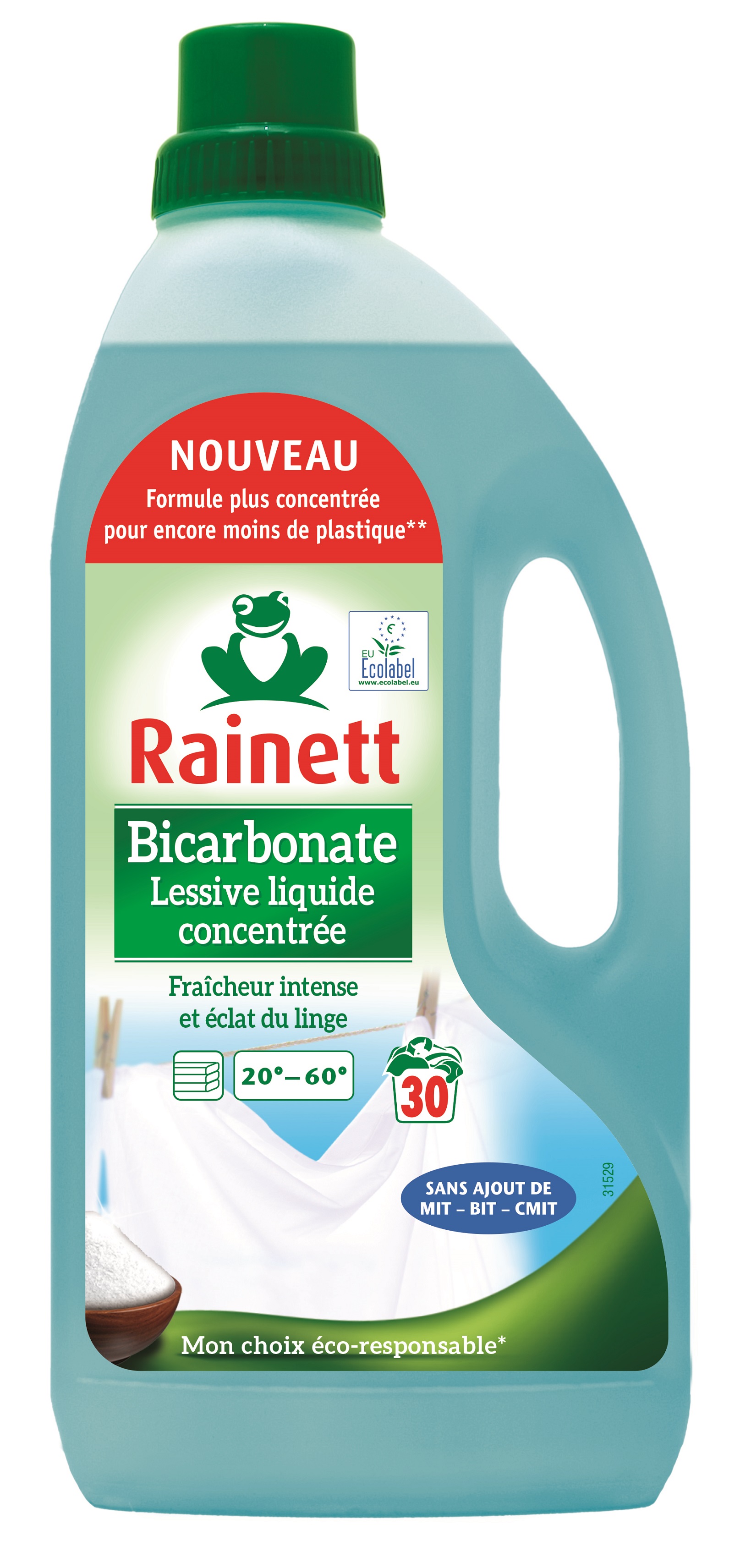 Rainett Lessive Liquide Concentrée Ecolabel Bicarbonate 1.5l - Bouteille 30 lavages