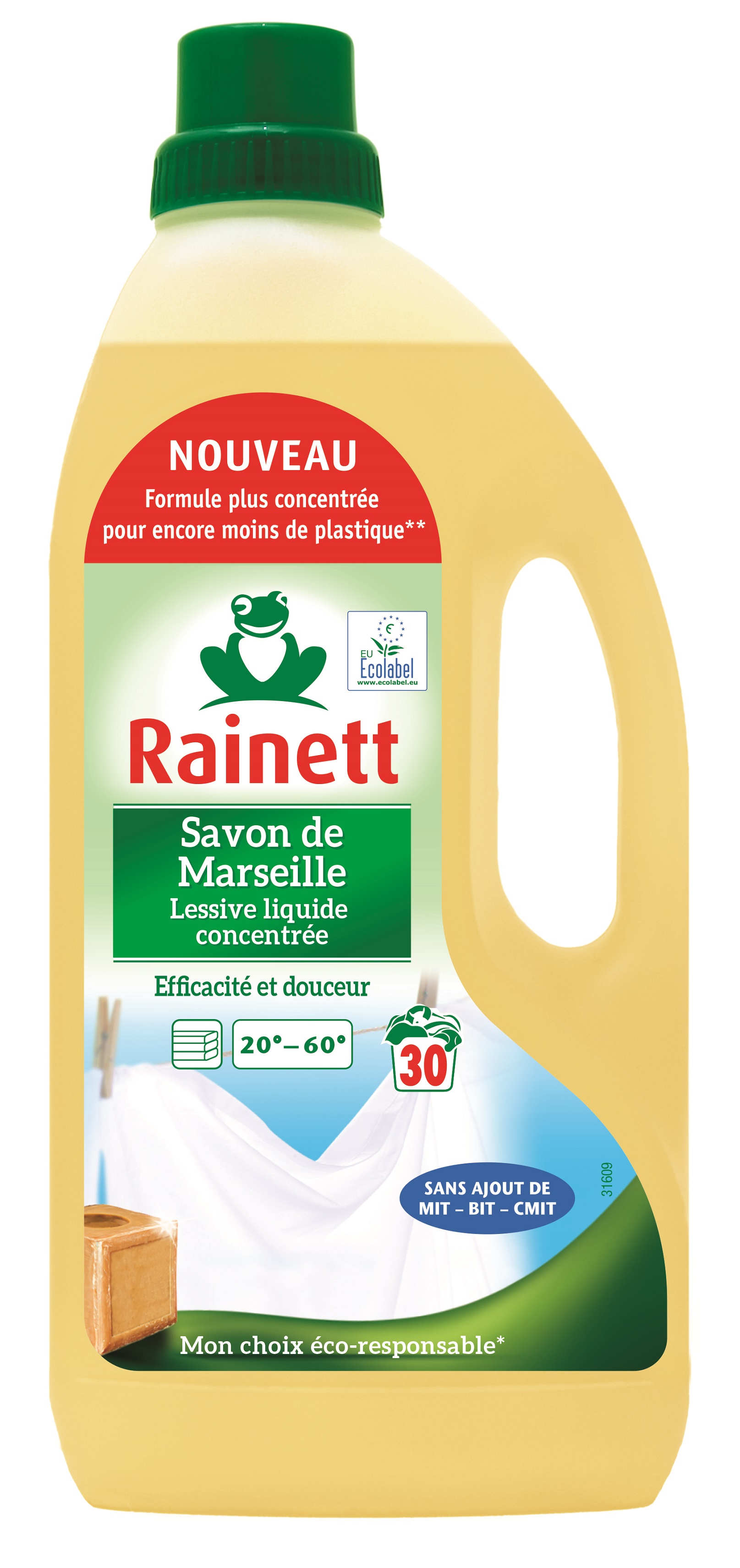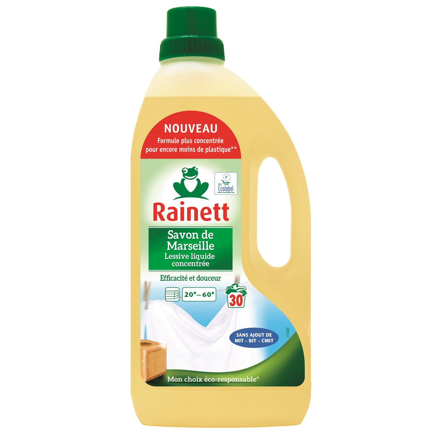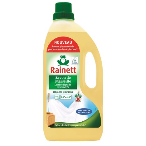 Rainett Lessive Liquide Concentrée Ecolabel Savon de Marseille 1.5l - Bouteille 30 lavages