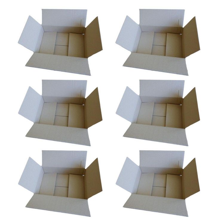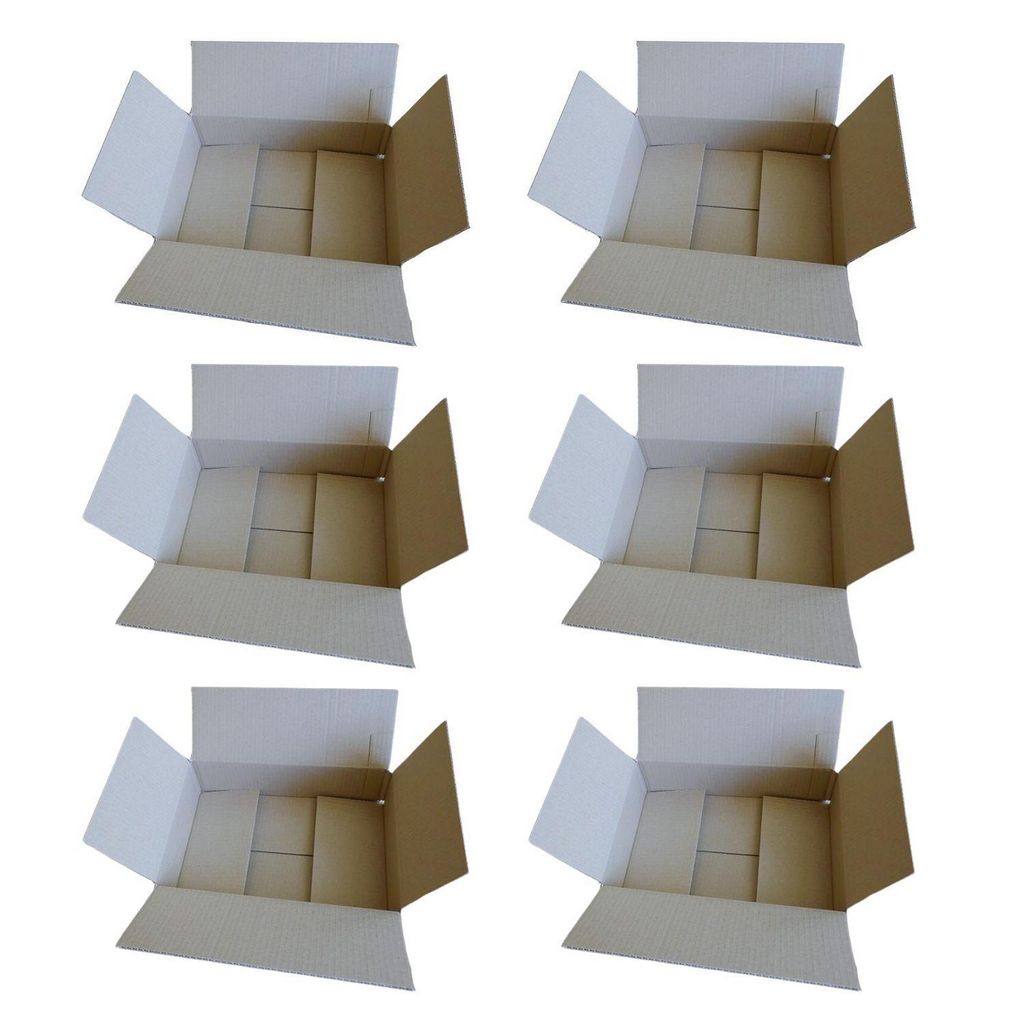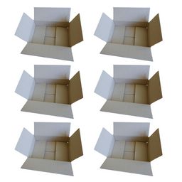 6 cartons d'emballage solide et bien taillé, à simple cannelure, couleur marron clair. Excellente résistance à l'éclatement et à la perforation. Adapté au format postal. Dimensions : 31 x 21 x 7,5 cm