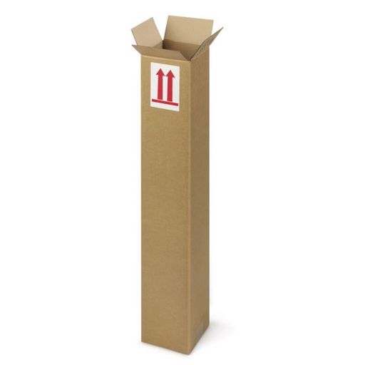 Carton d'expédition allongé en carton, très solide et résistant. Cette caisse est adaptée aux objets allongés et fagiles. Dimensions : 50 x 10 x 10 cm