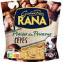 Ingrédients : Farce 60%: ricotta (sérum de LAIT, LAIT, sel), cèpes 16% (Bolétus edulis et son genre), chapelure (farine de BLÉ tendre, eau, sel, levure), champignons de Paris 9% (Agaricus bisporus), fibres végétales (maïs et pomme de terre), huile de tournesol, sérum de LAIT en poudre, oignons, FROMAGE mozzarella, FROMAGE mascarpone, vin blanc, persil, flocons de pomme de terre, LACTOSE, amidons, arômes naturels (contiennent LAIT, BLÉ , ORGE), sel, ail. Pâte 40%: farine de BLÉ tendre, OEUFS 30%, semoule de BLÉ dur.