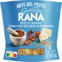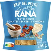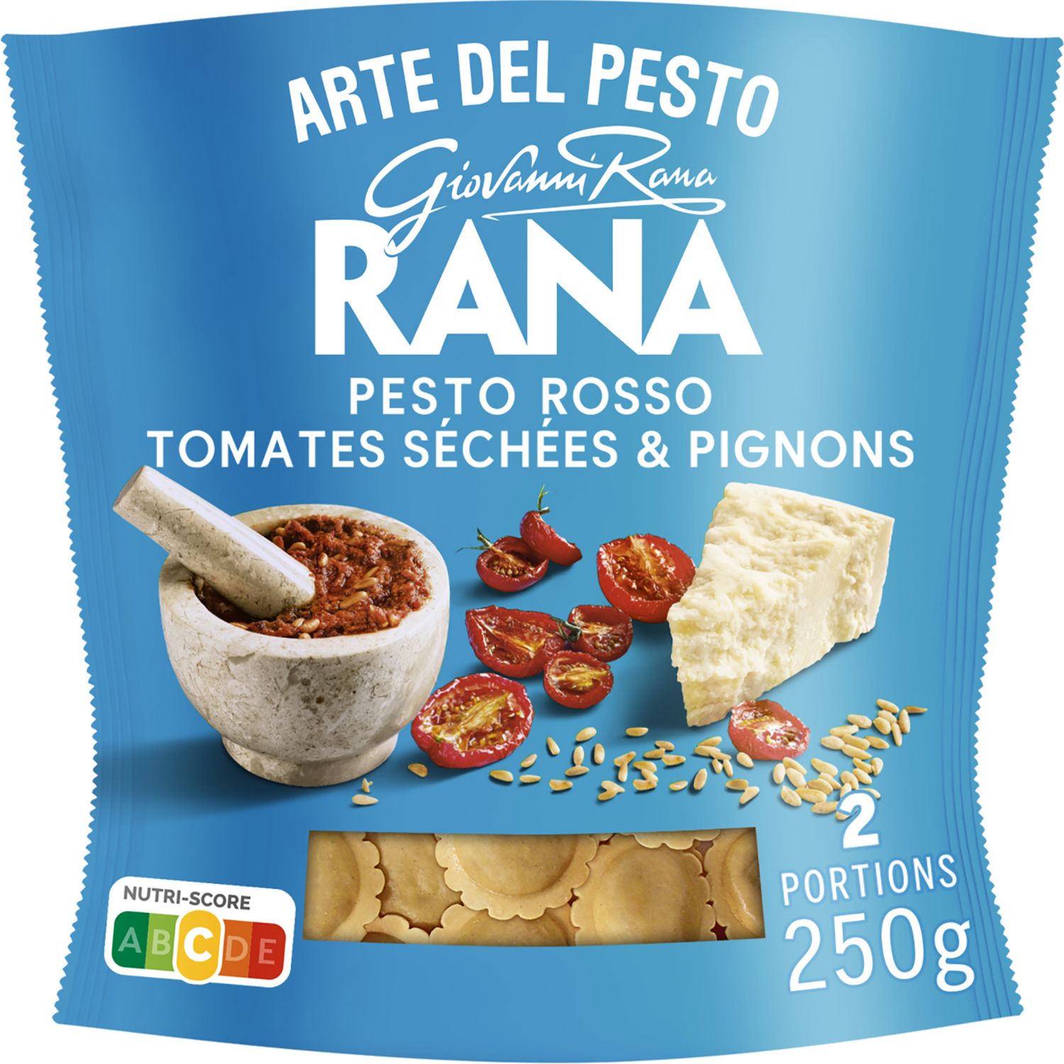 Ingrédients : Farce 58% : pesto de tomate 48% (tomates en morceaux 35%, huile d'olive extra vierge, concentré de tomates 12%, AMANDES, huile de tournesol, FROMAGE Pecorino Romano AOP* 6%, tomates séchées 5%, pignons de pin 3%, sel, ail), FROMAGE ricotta (sérum de LAIT, LAIT, sel), fibres végétales (chicorée et blé), sérum de LAIT en poudre, BEURRE, chapelure (farine de BLÉ tendre, eau, sel, levure), préparation de basilic (Basilic génois AOP* 60%, huile de tournesol, sel), basilic, arômes naturels.