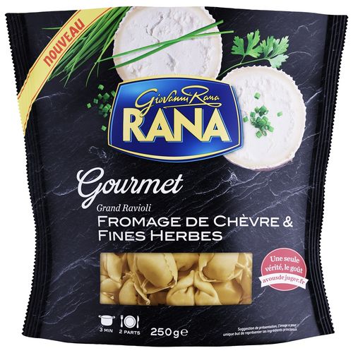 Ingrédients : Farce 56%: ricotta (serum de LAIT, LAIT, sel), CRÈME, FROMAGE de chèvre 9%, FROMAGE mozzarella , FROMAGE mascarpone, amidons, chapelure (contient GLUTEN), huile de tournesol, fibres vegetales, serum de LAIT en poudre, FROMAGE rapè, sel, BEURRE, persil 1%, ail, ciboulette 0.7%, sucre, aromes naturels (contient LAIT), poivre, ail en poudre. Pâte 44%: farine de BLE tendre, ŒUFS 30%, semoule de BLE dur.