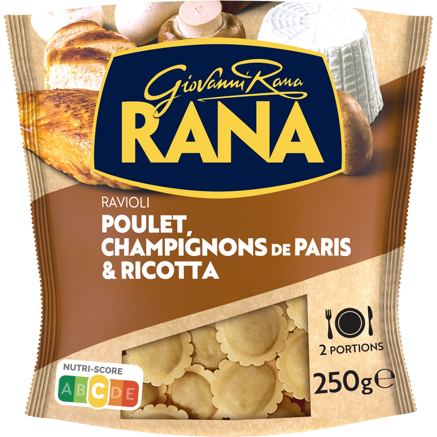 Ravioli au poulet, champignons de Paris & ricotta